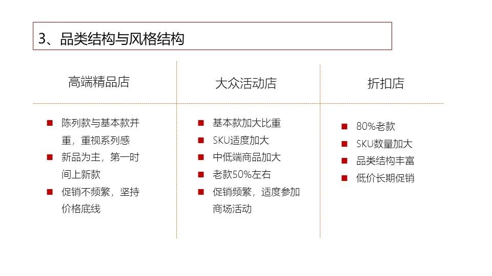 品类方面,以主销类和四季产品为主,拉长产品市场销售周期
