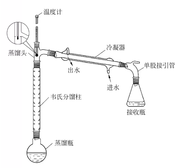 实验室中常用的分馏装置是韦氏分馏柱。柱内每隔一定距离就有一组向下倾斜的刺状物玻璃柱(塔板),各组刺状玻璃柱呈螺旋状排列的分馏管内。韦氏分馏柱装配简单,液体残留少,但精密度较低。