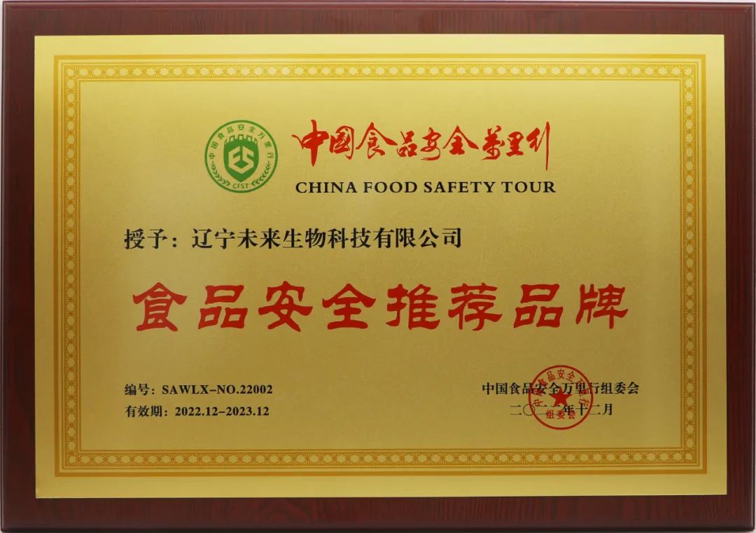 授予未来生物“食品安全推荐品牌”荣誉称号。