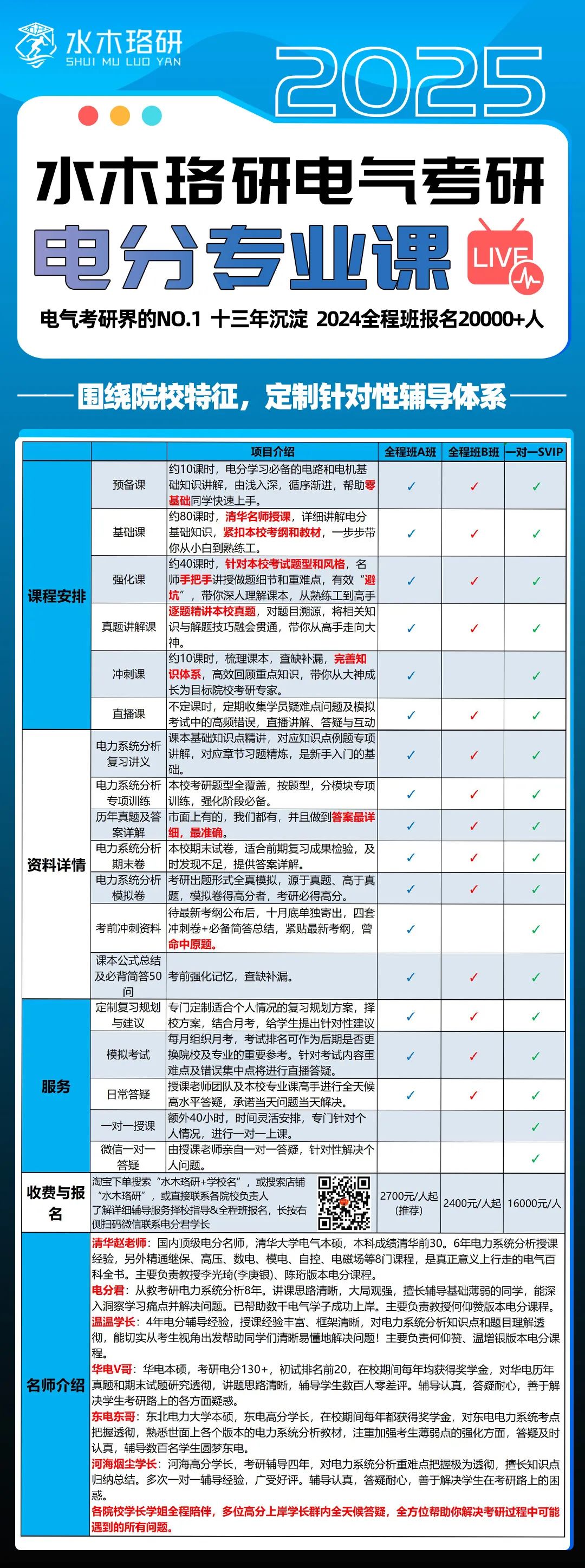 名校师资,清华大学本硕、国内顶级电分名师赵老师坐镇,精通各门专业课,被称为“行走的百科全书”,同时本校学长云集,阵容强大;