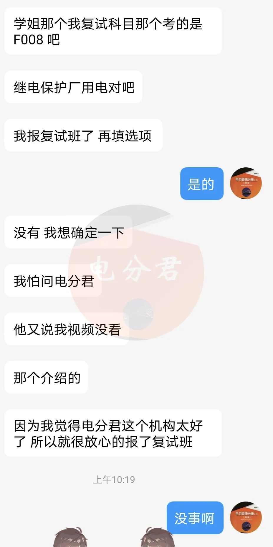 ▨ 东电东哥:东北电力大学本硕,东电高分学长,在校期间每年都获得奖学金,对东电电力系统考点把握透彻,熟悉世面上各个版本的电力系统分析教材,注重加强考生薄弱点的强化方面,答疑及时认真,辅导数百名学生圆梦东电。
