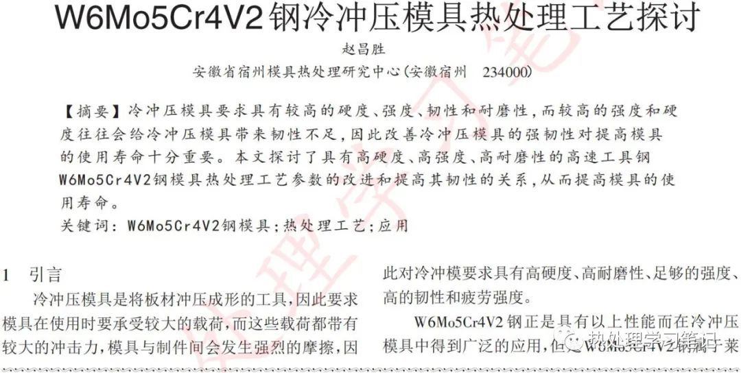 W6Mo5Cr4V2钢冷冲压模具热处理工艺探讨