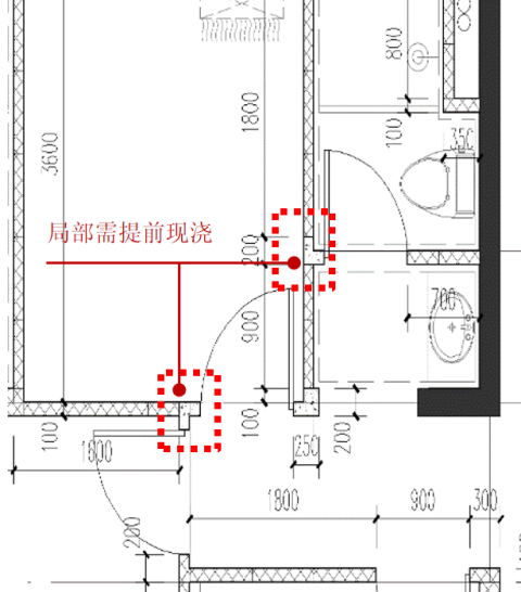 转角(阴阳角)、门垛等位置无异形板,局部需现浇 |