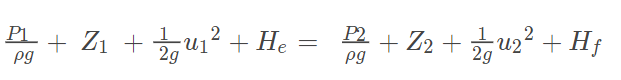 式中Hf就是上面章节计算出的阻力损失,He即装置所需要的压头。通过上式就可以计算出He。通常泵的扬程为装置所需扬程的1.05倍,此时我们就得到想要的泵的扬程。