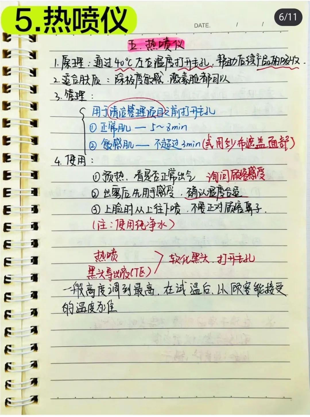 原理:热喷仪利用高温蒸汽的作用,加速肌肤表面的血液循环,促进毛孔打开,以便更好地清洁和吸收护肤品。