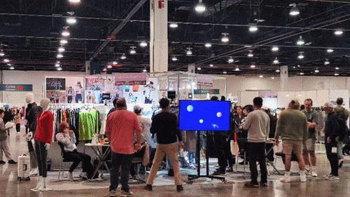 南京某企业连续数年参加本展会,在2023年8月SOURCING at MAGIC举办25周年的颁奖礼上获得了最佳展商奖。本届展会他们充分准备,在标配的基础上还花心思准备了大屏电视投放企业宣传视频,以及各类男女模特来展示公司热推产品,开展才半天展位上已经买家络绎不绝,忙碌到无法插空吃饭!