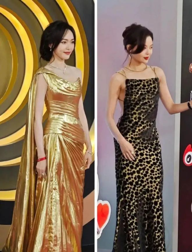 近期一场重要活动中,杨紫身着一袭高贵典雅的香槟色礼裙再现经典的一字肩设计,可似乎效果不尽如人意。反观辛芷蕾,身着豹纹露背礼服惊艳全场,深沉的色调中流露出强大的气场。相比之下,杨紫的发型与礼服相得益彰,显得稍显成熟。