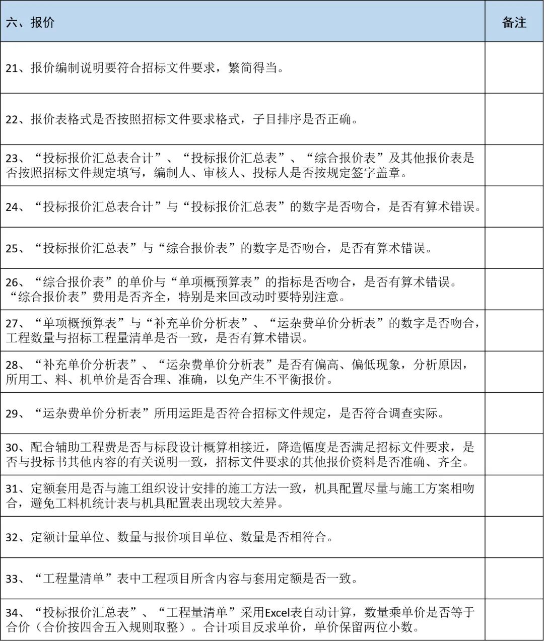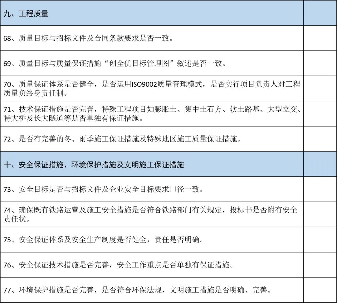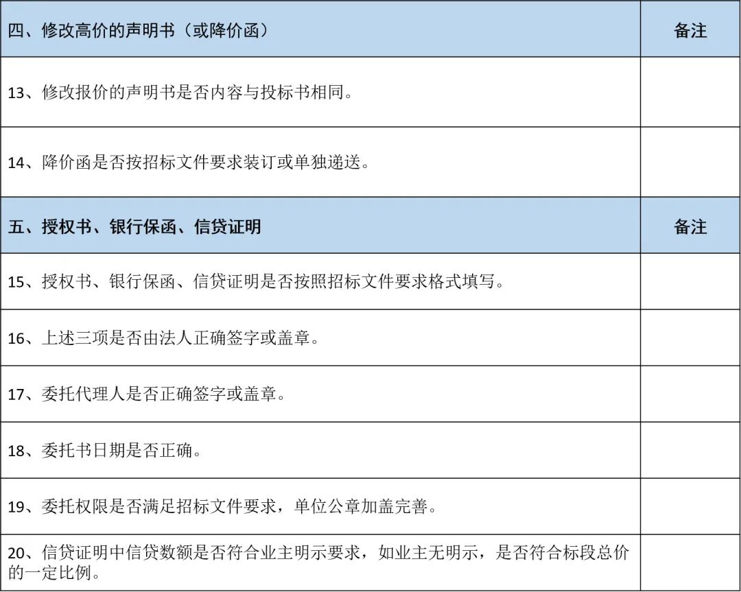 投标文件编制完成,也不要轻易放松警惕!按此表格进行核查,能够大大降低避免废标的产生。