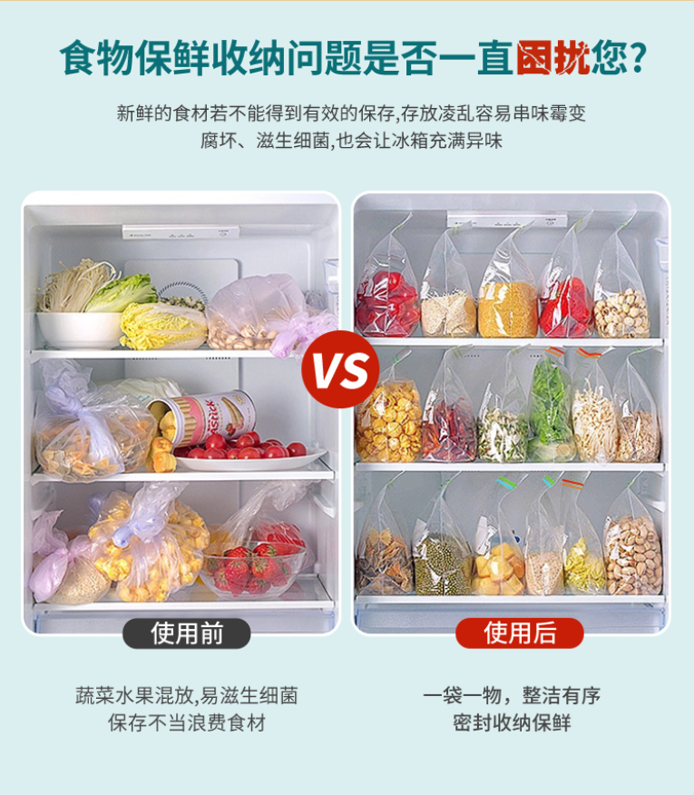 用这款保鲜袋密封,整整齐齐麻在冰箱里