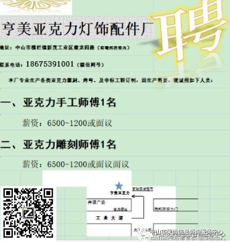 【亨美亚克力灯饰配件厂】招聘《师傅》