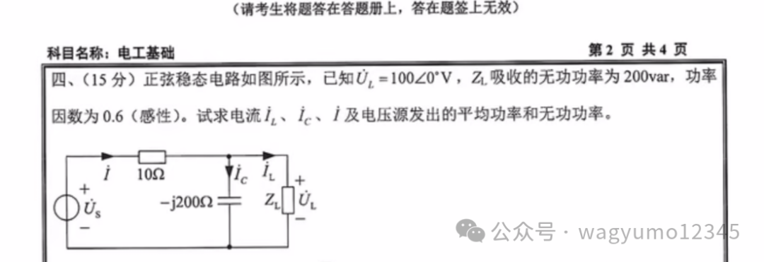 因为无功功率得计算公式可以得到Q=UIsinθ,得到电流Il=2.5A,因为功率因数为0.6 所以功率因数角为53.1°。因为支路Zl为感性,电压为100∠0°,所以电流Il=2.5∠-53.1°。