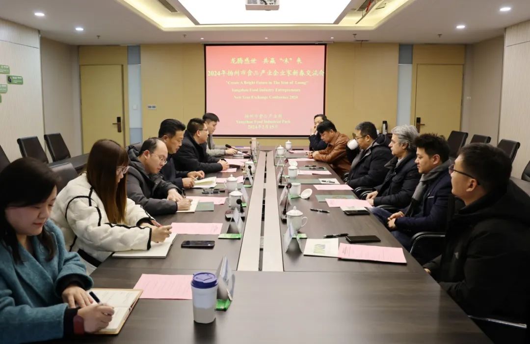 为促进扬州食品行业繁荣发展、合作共赢,2月15日下午,食品产业园召开“龙腾盛世 共赢‘味’来”食品产业新春交流会,与来自意大利和区外食品企业负责人共度新春佳节、共叙产业情谊、共谋发展良策。扬州市工商联党组成员、副主席徐直,市工商联会员处处长朱宇,食品产业园党委书记、管理办主任朱午,党委副书记、管理办副主任陈沿明出席活动。意大利星迪蓝冰淇淋烘焙扬州工厂董事长可可•兰贝托、“一带一路”中意经济文化合作中心执行主任周劲草、扬州市鼎鑫食品集团有限公司总经理陈昊、江苏荷仙食品集团有限公司副总经理王健、江苏华迈食品发展有限公司董事长李新铭、扬州大明寺素食坊餐饮发展有限公司董事长韦丰等参加活动。 交流会上,徐直表示,扬州是中国四大菜系之一淮扬菜的发源地,在食品产业发展上有着得天独厚的发展环境和条件,同时食品产业也是扬州市重点发展的“613”产业体系之一。扬州市食品产业园是本土食品产业发展的主阵地,在推动扬州食品产业发展上发挥了至关重要的作用,希望更多的食品企业加入食品产业园及扬州市食品产业协会,为做大、做强、做精扬州的食品产业贡献力量。百花齐放,放大“美食之都”品牌效应。本土食品企业要强强联合、取长补短、抱团合作,持续放大“世界美食之都”的品牌效应,打造本土的高端食品品牌,与意大利星迪蓝等食品企业建立合作,让扬州美食走向世界、飘香全球。以商引商,发挥“产业链条”引领作用。立足拓展、强化食品产业链,引导行业协会、高校院所、供应链等社会各方力量与食品企业通过结对合作等方式,上下游同频共振,推动食品产业延链、补链、强链,促进食品产业链的高质量发展。共享共建,构建“互惠共赢”产业生态。发挥龙头企业的示范引领作用,形成一对一或者一对多的结对帮扶机制,推进本土食品企业在创新链、产业链、供应链等方面全面融通,营造食品产业协同发展的良好氛围。