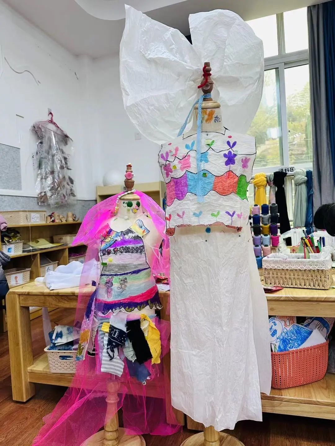 根据制衣区的提示,一些孩子们开始了给小模特做旗袍的尝试,体验了一把当小裁缝的感觉,感受到了服装制作的容易。