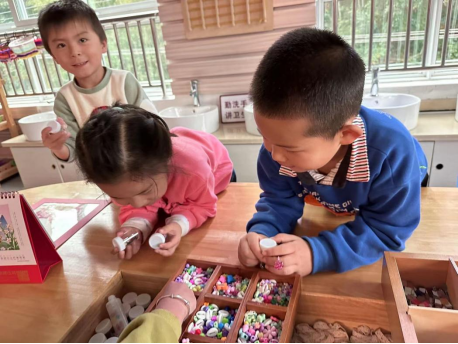 根据上课内容,科学区投放了操作表和进阶版操作表,让幼儿操作配对。还请了小小讲解员帮助大家检查答案。