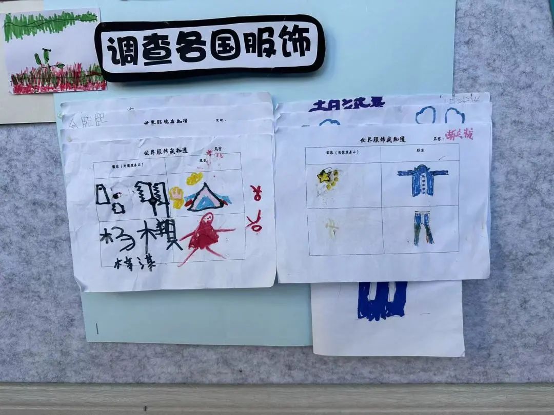 在爸爸妈妈的帮助下,孩子们前期了解了一些不同国家服饰的特点。