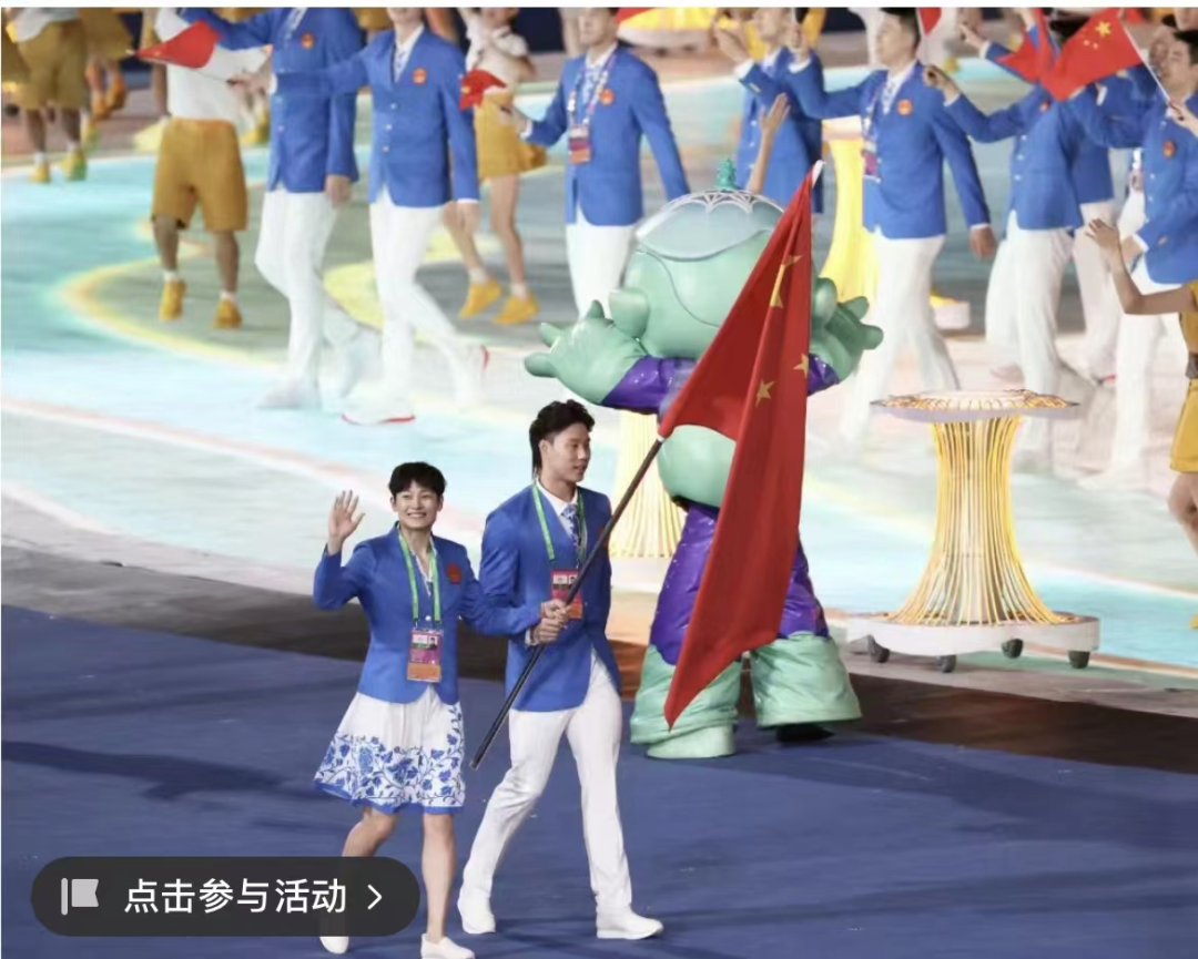 此次杭州亚运会的中国队礼服以蓝色为主调,搭配青花瓷元素,展现了一种独特的东方韵味。
