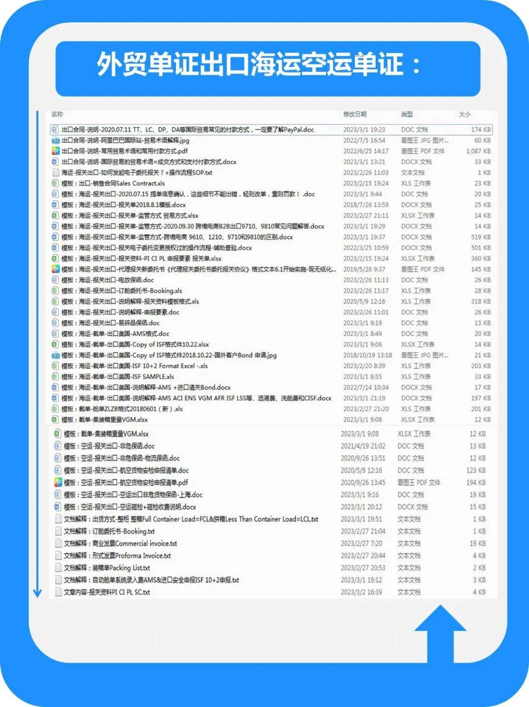 我是外贸单证员,前阿里巴巴国际站运营,IDO老徐IP合伙人,生财有术会员,曹大caoz星球成员,日更公众号,在职场玩副业的巧巧。微信787223147,交个朋友,付1元送41种外贸单证空海运出口单据模板(单据名词解释说明)+送2个群外贸单证交流群+外贸唠嗑群刚做外贸新手单证需要的出口海运空运出口美国模板资料分享:订舱+合同&报关+截单+电放保函单证模板
