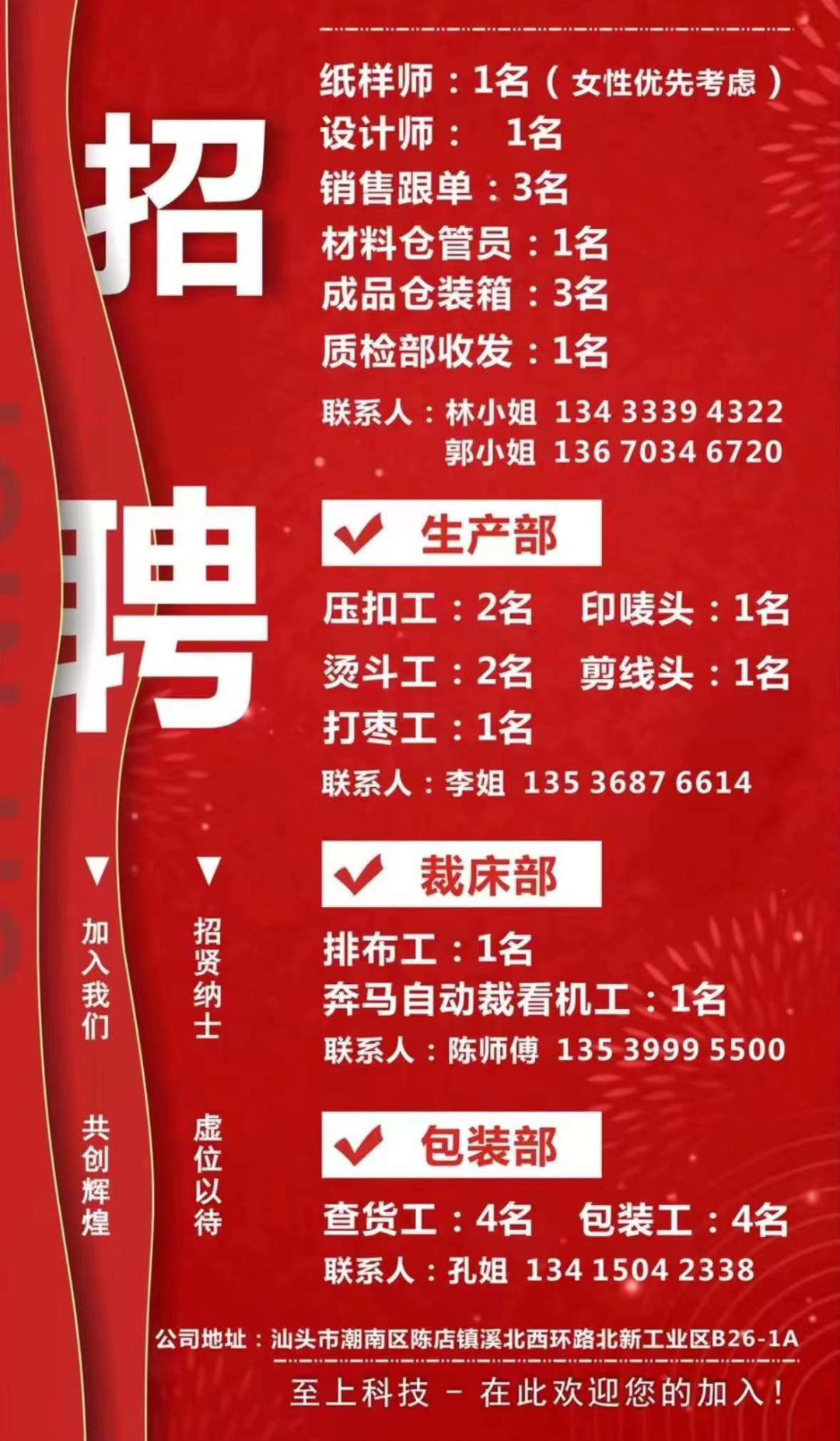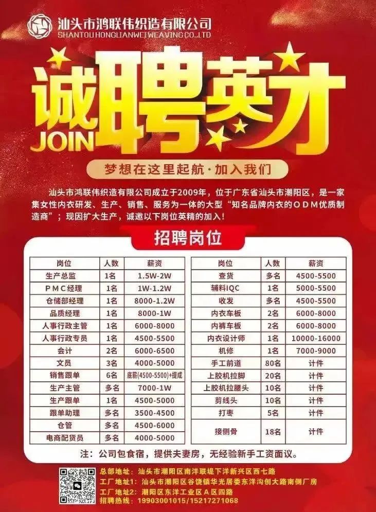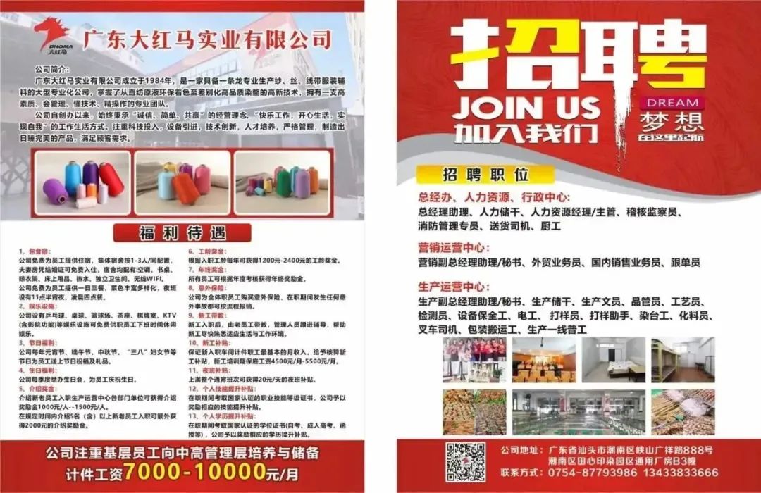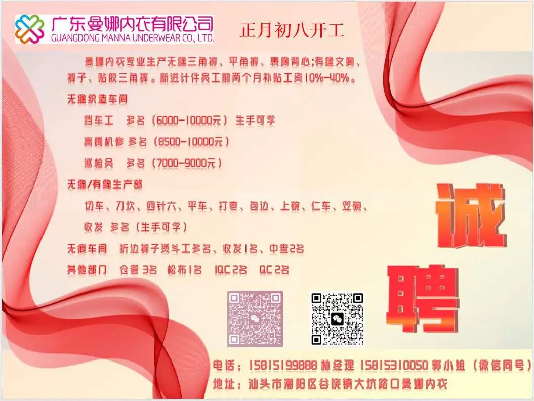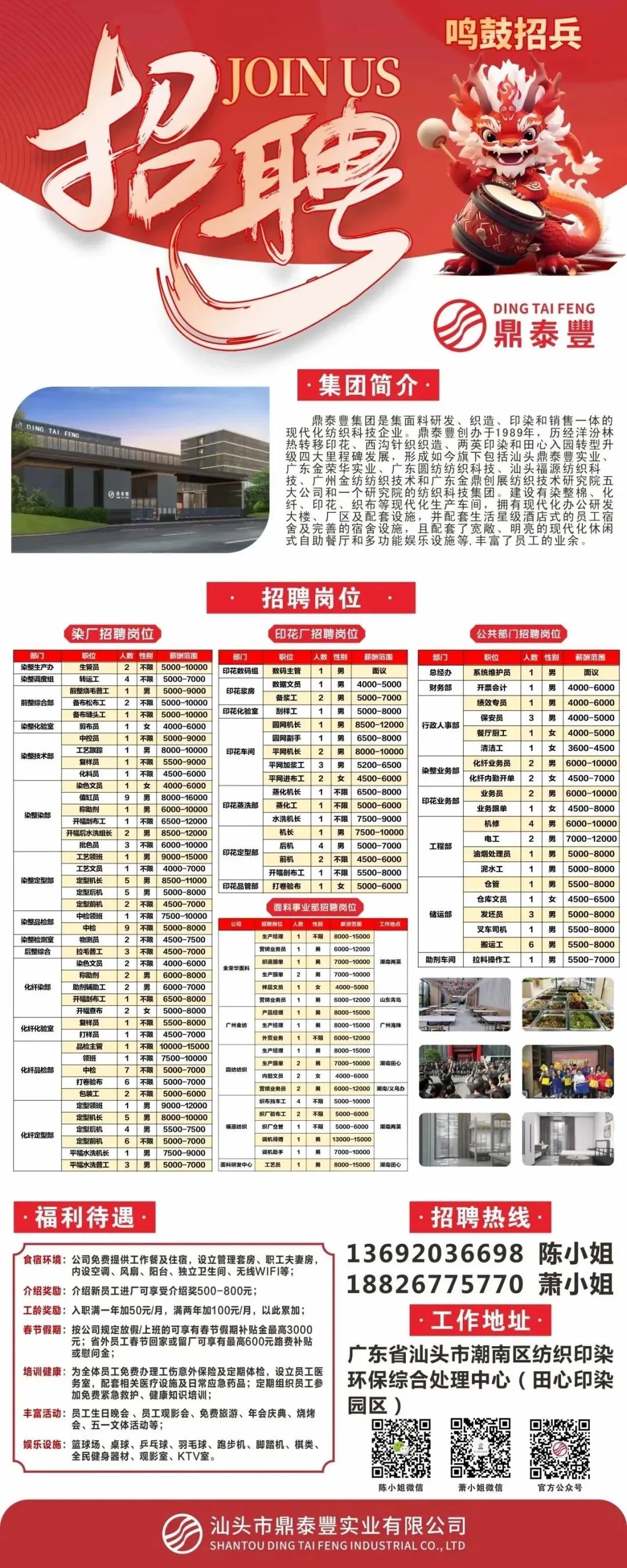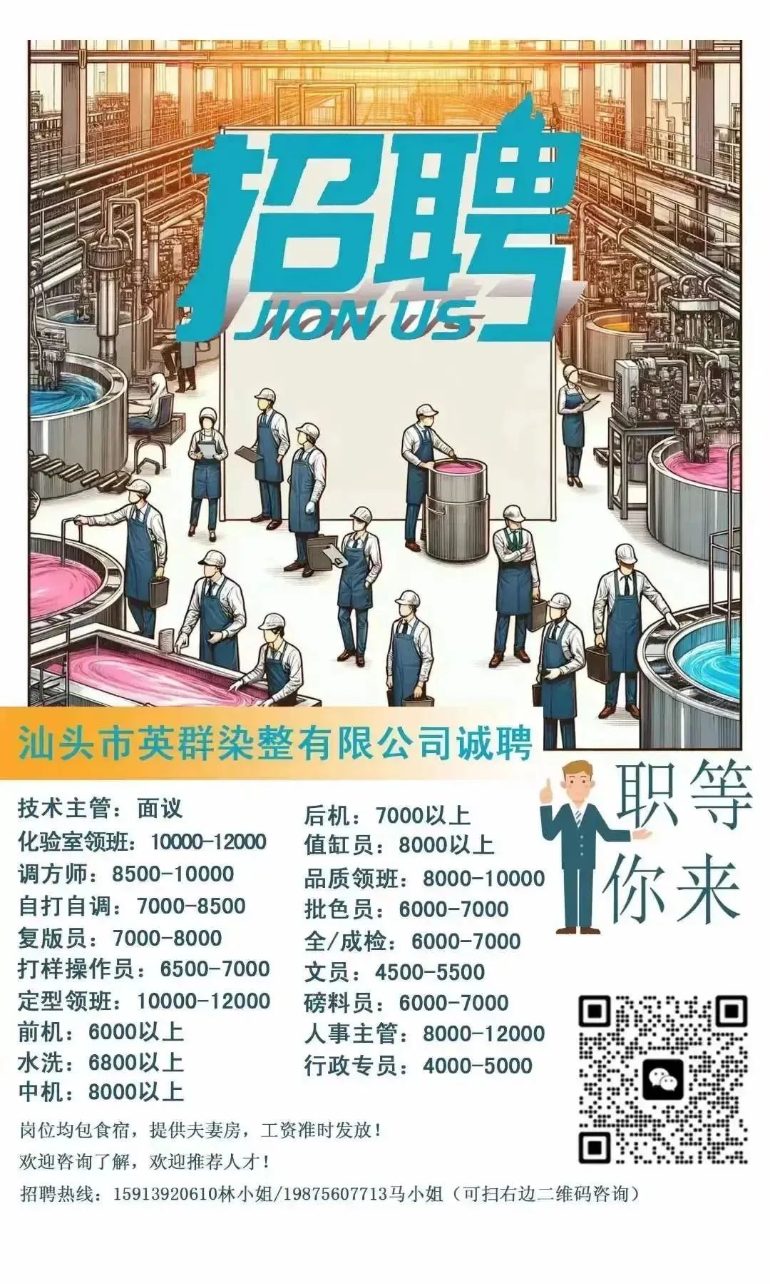 开工啦~新年“薪”机会,“职”为等你!众多优秀纺织企业为满足生产需求,广招人才中!不管是技术岗、办公室文职还管理岗,福利待遇全拉满,总有一份适合你~