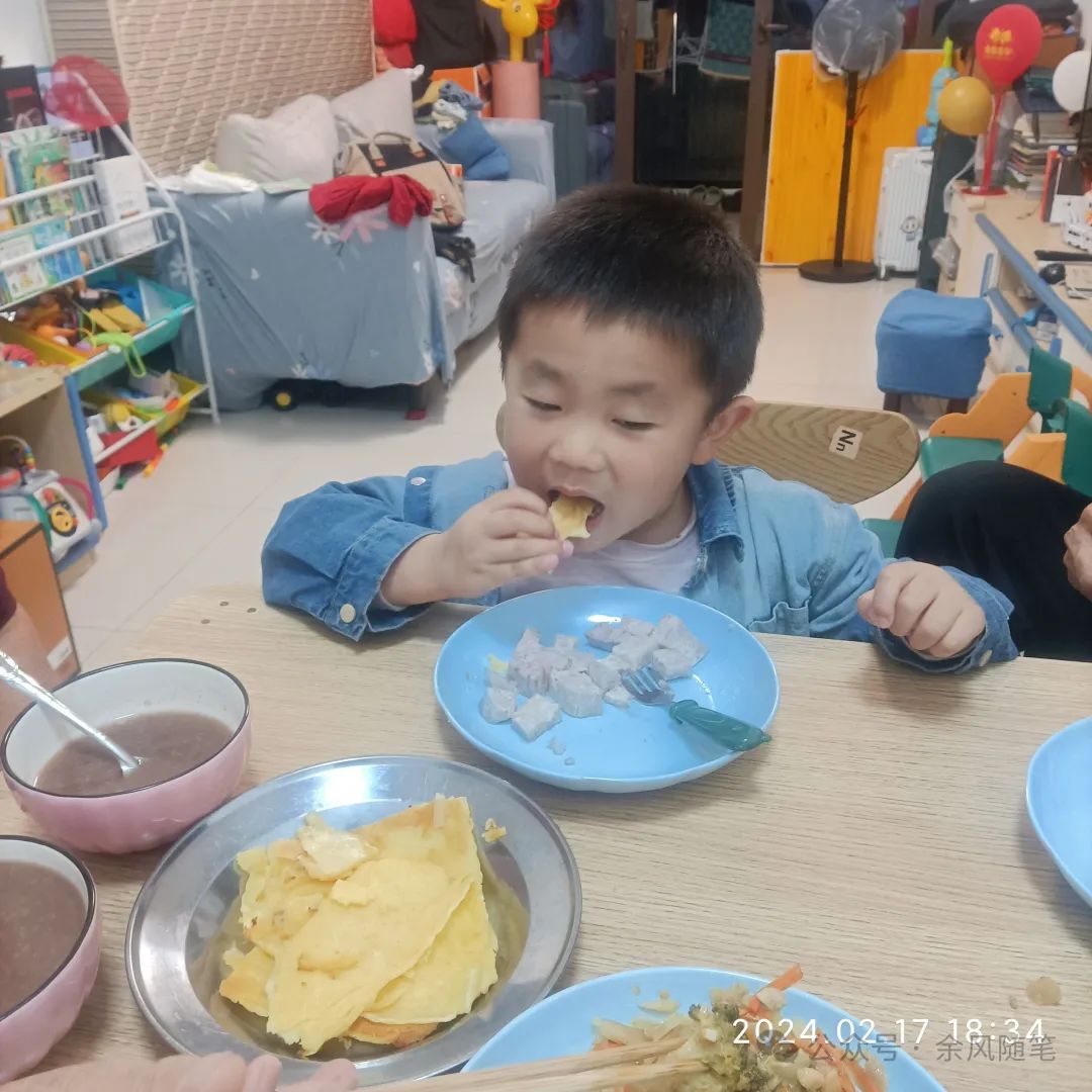 爸爸:懿懿,你要把芋头吃完哦。