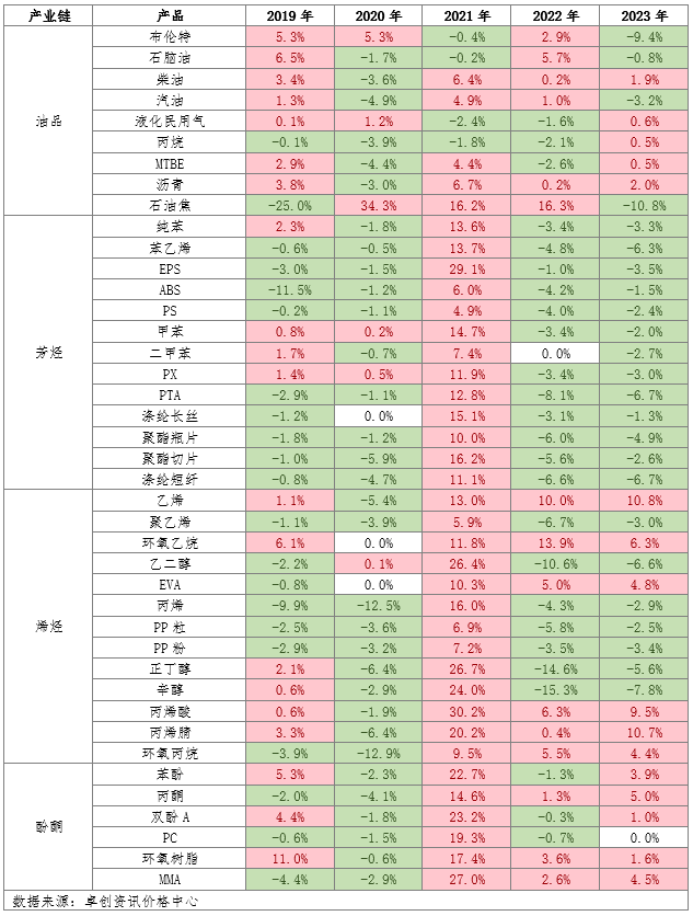 附表:历年石化产品春节后两周涨跌表(选取主要代表市场价格作为参考)