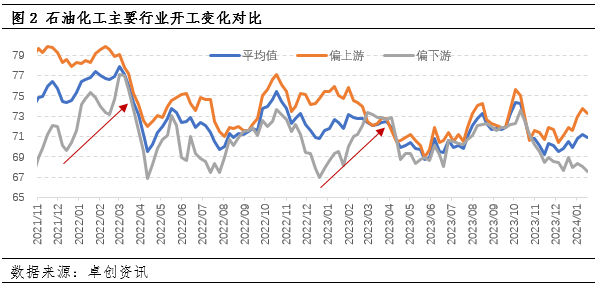 历史规律显示,2-3月石油化工品供需矛端将明显缓解。1-3月偏下游石油化工品开工负荷处于持续提升阶段,偏上游原料端多数装置将进入检修季。今年春节前来看,自2023年12月开始原料端开工负荷持续提升,下游开工负荷缓慢下行。从历史规律来看,2月下旬到3月期间,偏下游化工品开工负荷将进入持续提升阶段,原料端生产开工增幅有限,部分行业进入检修季将拉低整体供应水平。因此节后石化行业多数产品供需矛盾预计出现一定缓解。