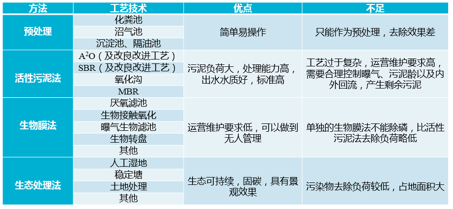 生物膜法用于农村污水处理,运维管理较为方便,广泛用于各种污水处理站、一体化设备和净化槽,有机物和脱氮效果较好,有除磷要求的情况下需增设辅助除磷等措施。
