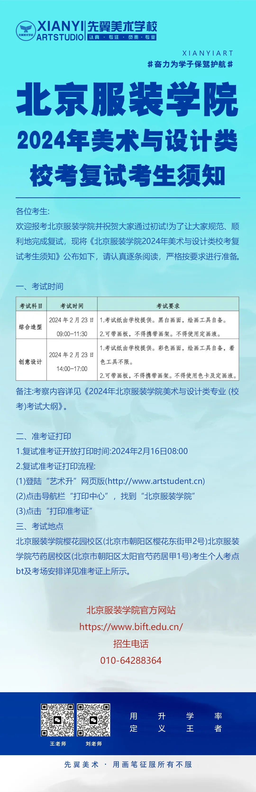 校考资讯 ▏北京服装学院2024年美术与设计类校考复试考生须知
