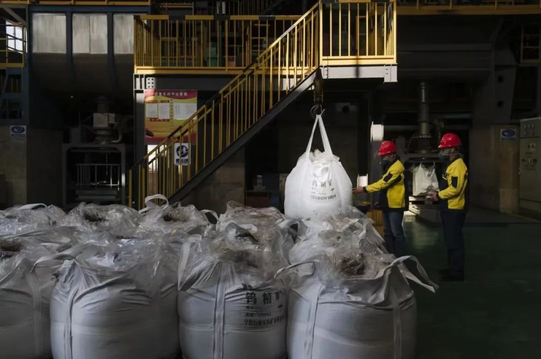 图为选矿部职工在吊装节后复工产出的第一批钨精矿。