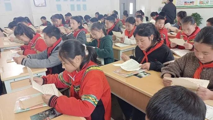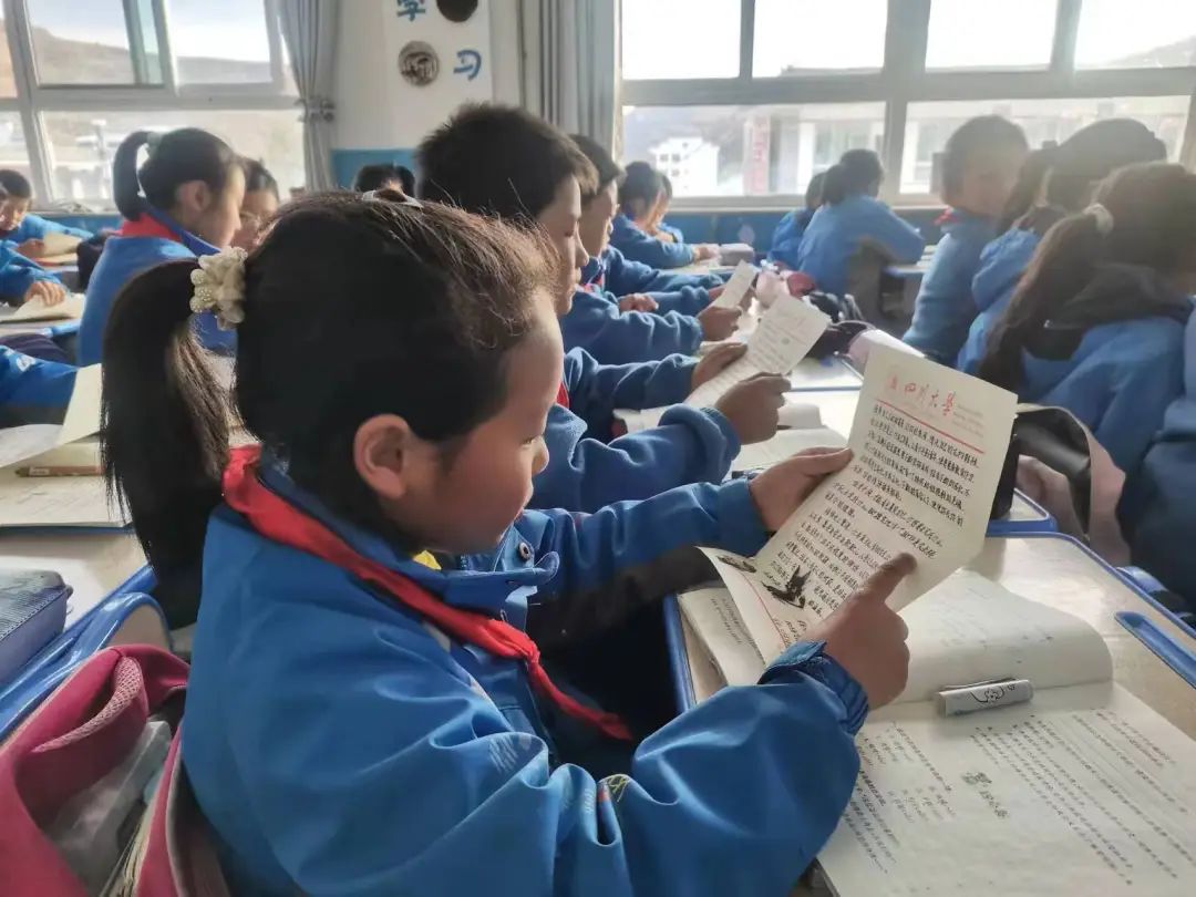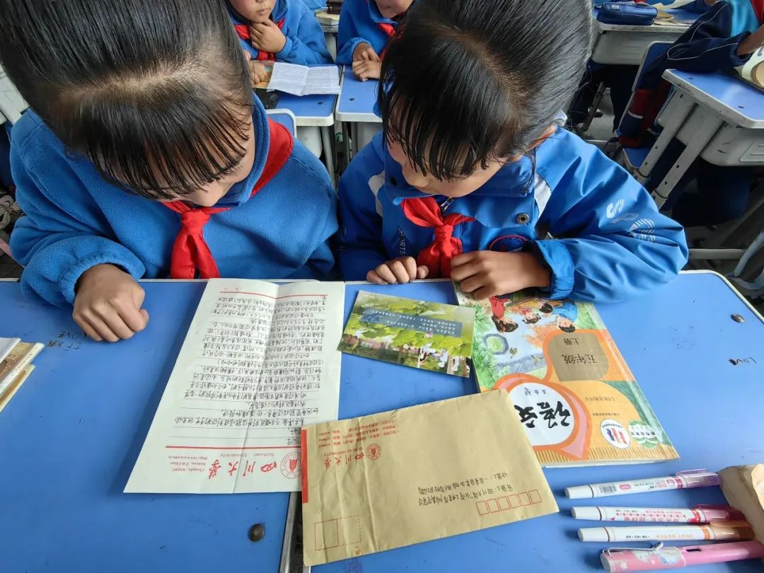 图为三河村及羊永的小朋友们阅读书信