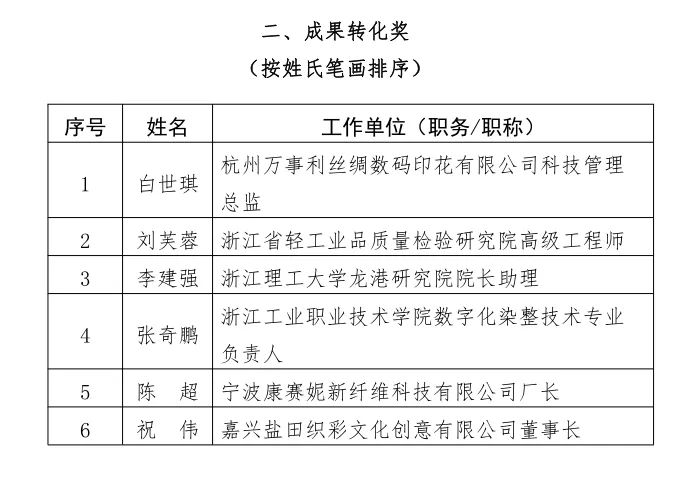 其中“成果转化奖”共 6 人获评,现将结果公布如下: