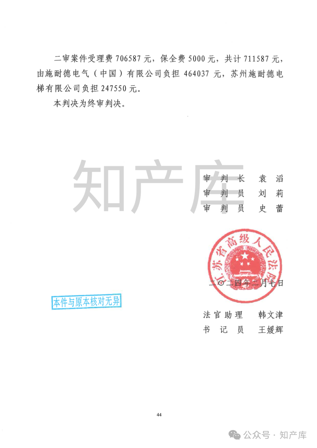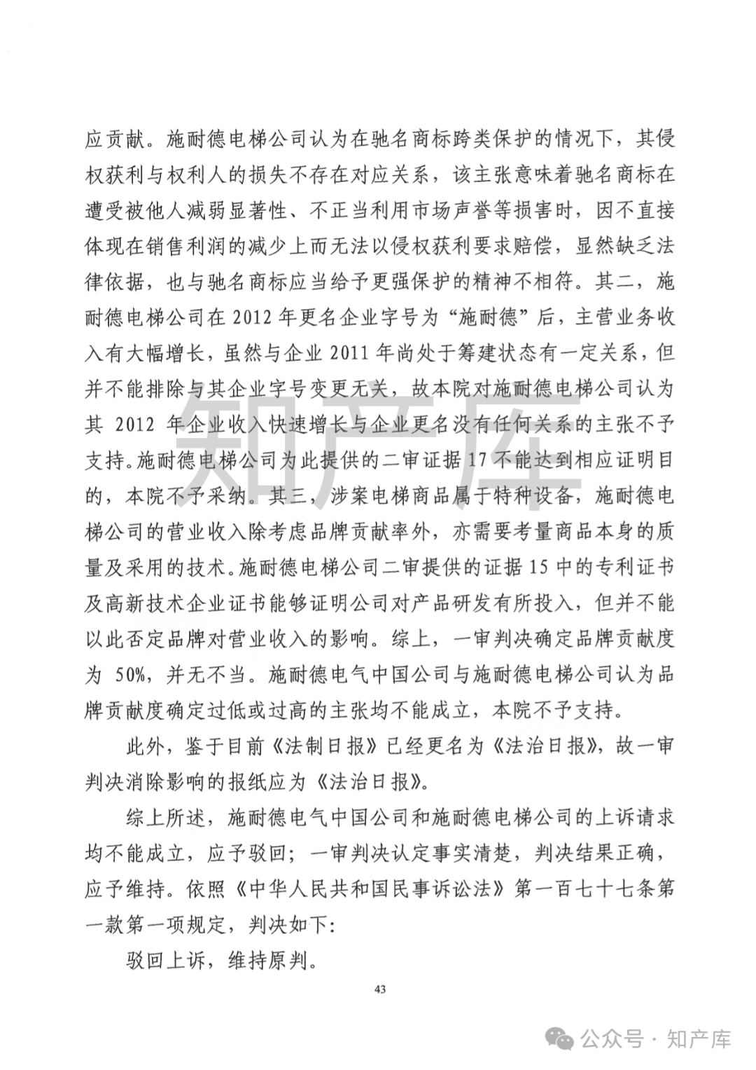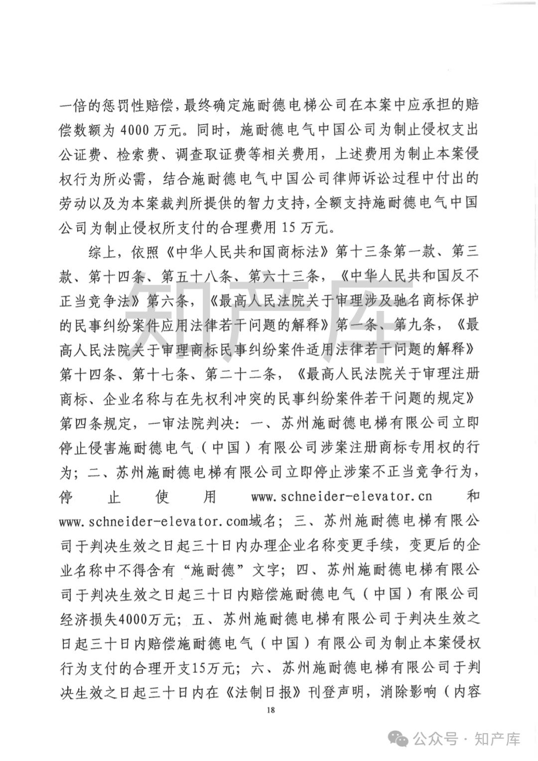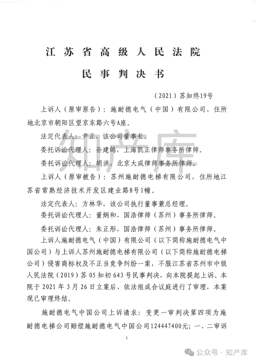 2024年2月7日,江苏高院就“施耐德电气”诉“施耐德电梯”案作出(2021)苏知终19号二审判决,维持苏州中院认定商标侵权及不正当竞争并判赔4000万元的一审判决。?