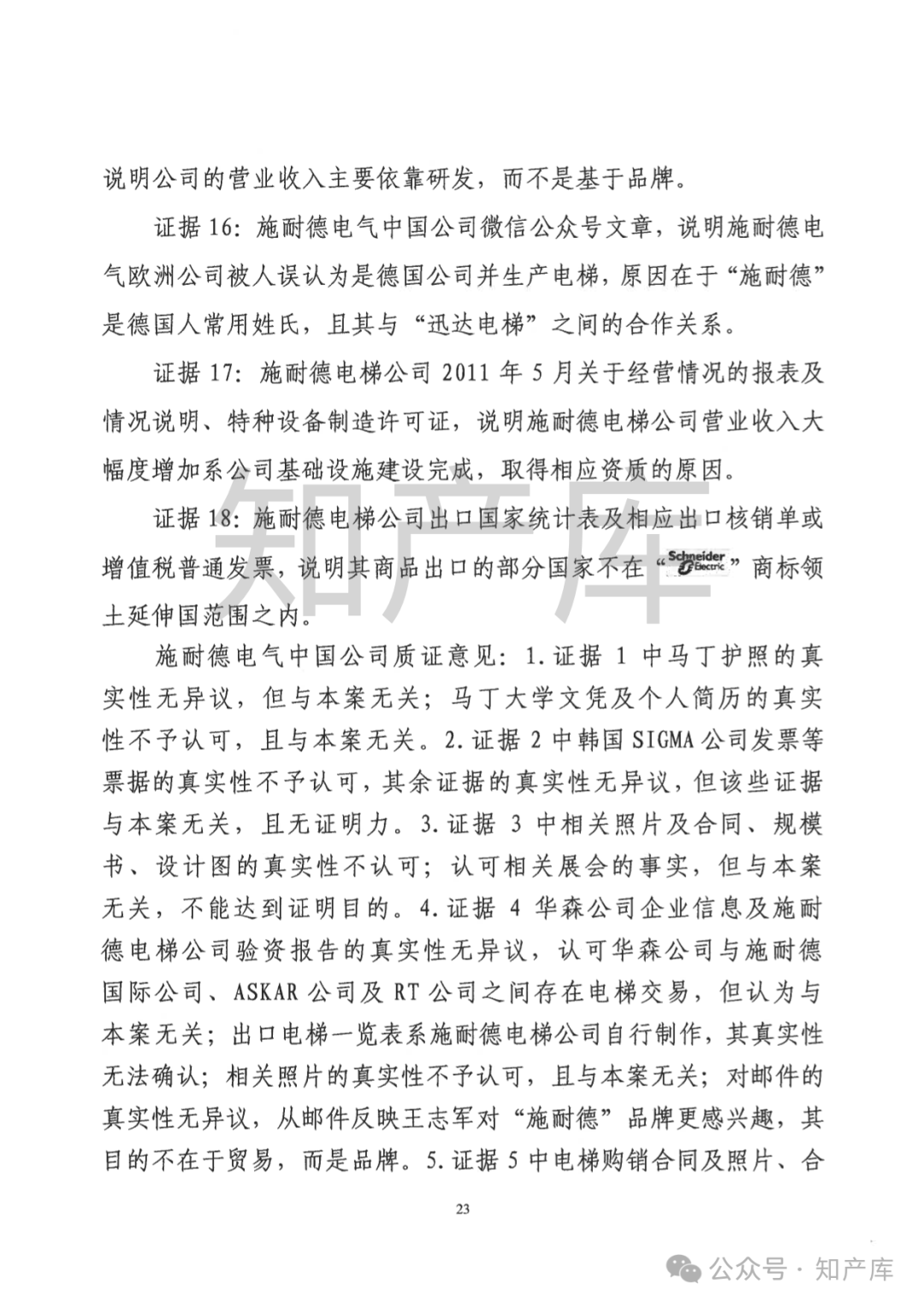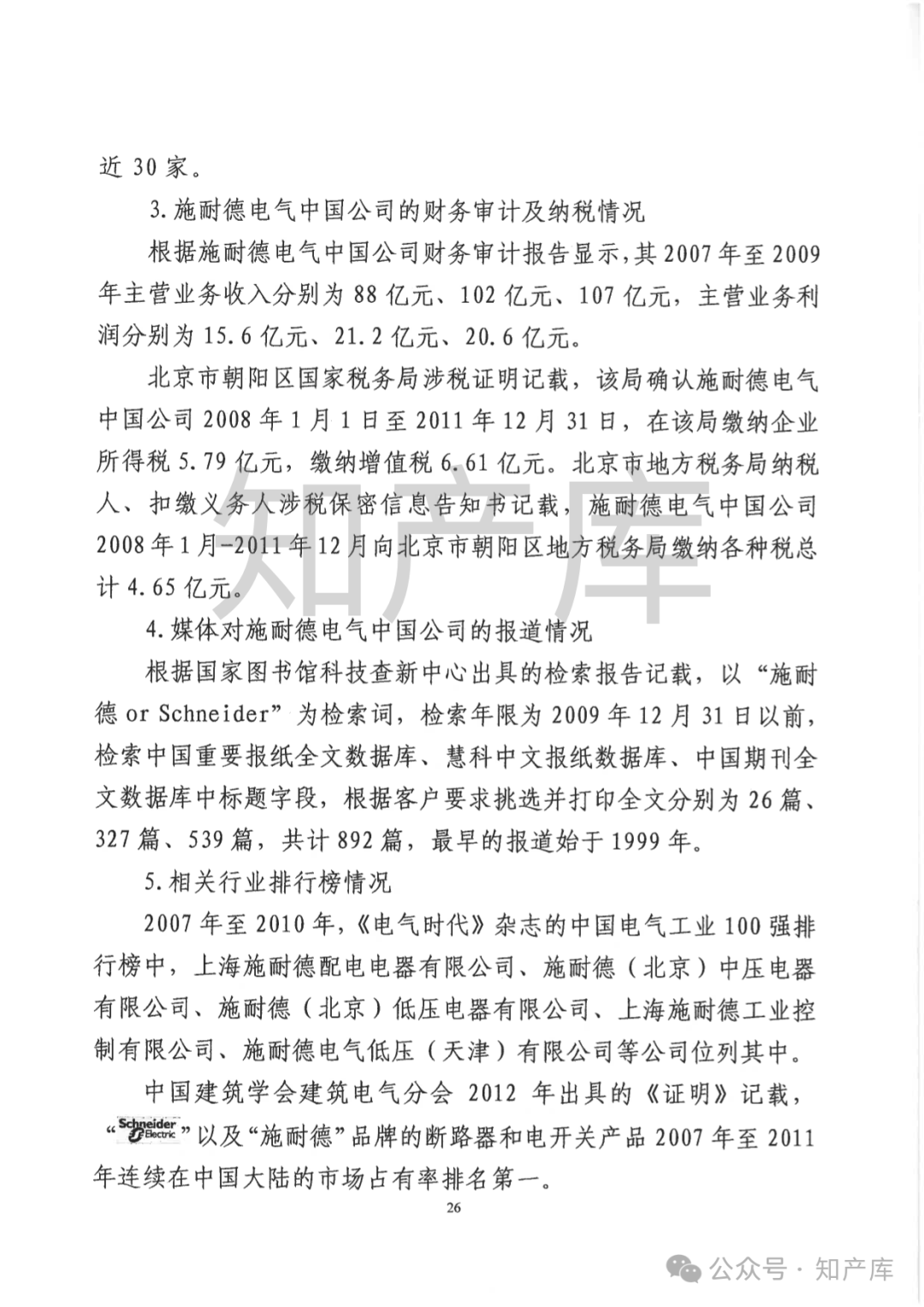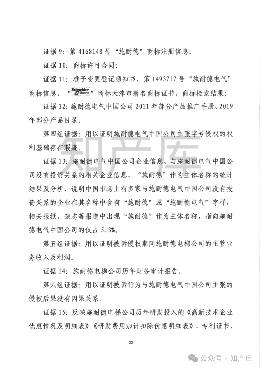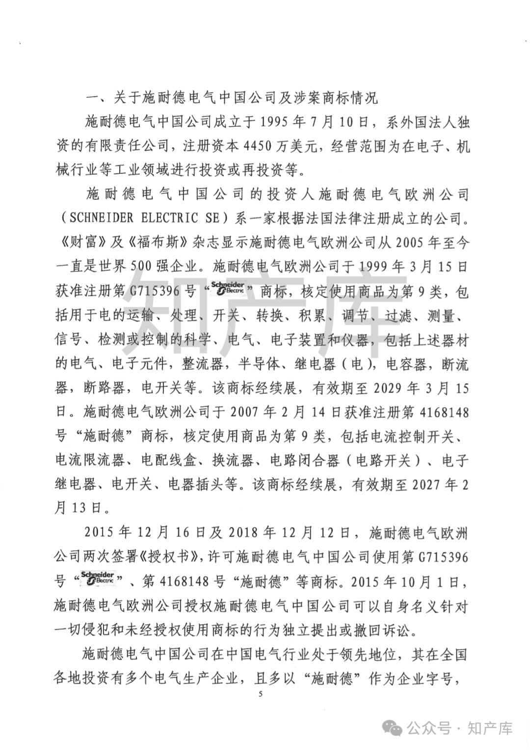 施耐德电气一审起诉认为,第9类“断路器、开关”等商品上的“施耐德”构成驰名,施耐德电梯在第7类电梯商品上构成商标侵权,企业字号及域名构成不正当竞争,索赔124447400元及合理支出费用15万元等。