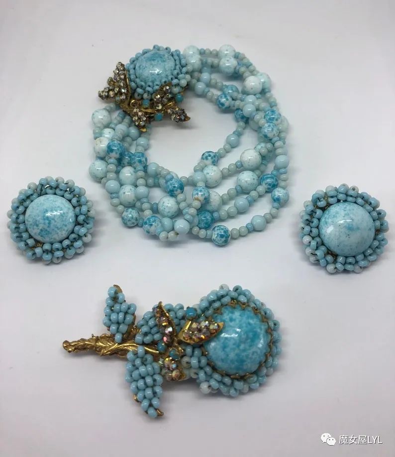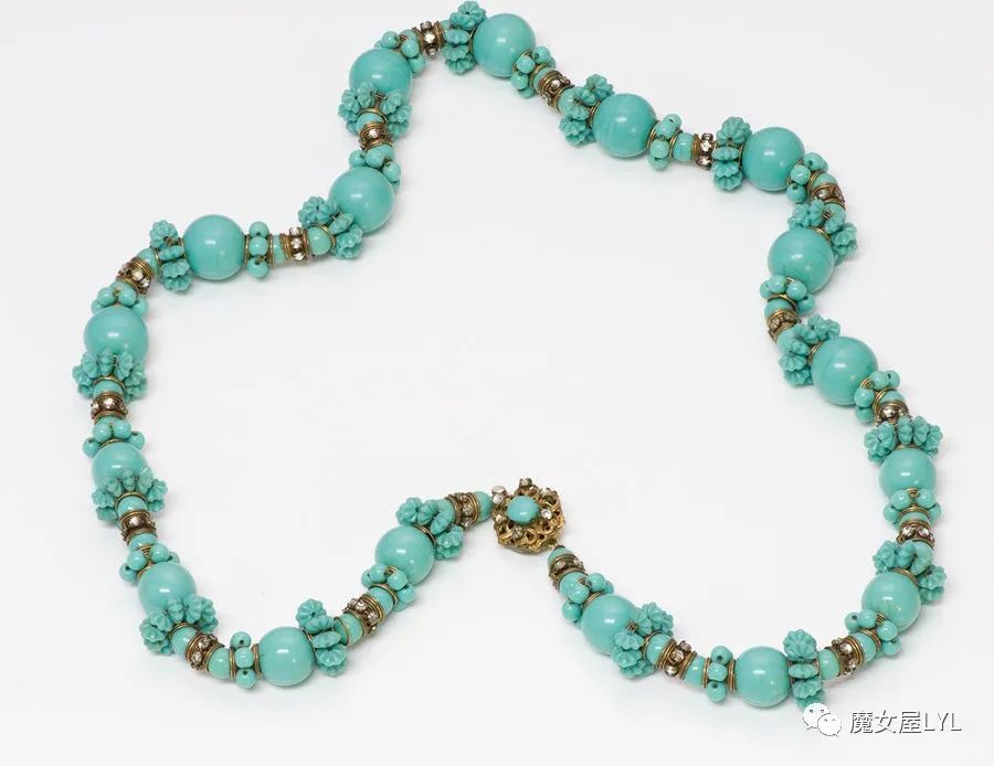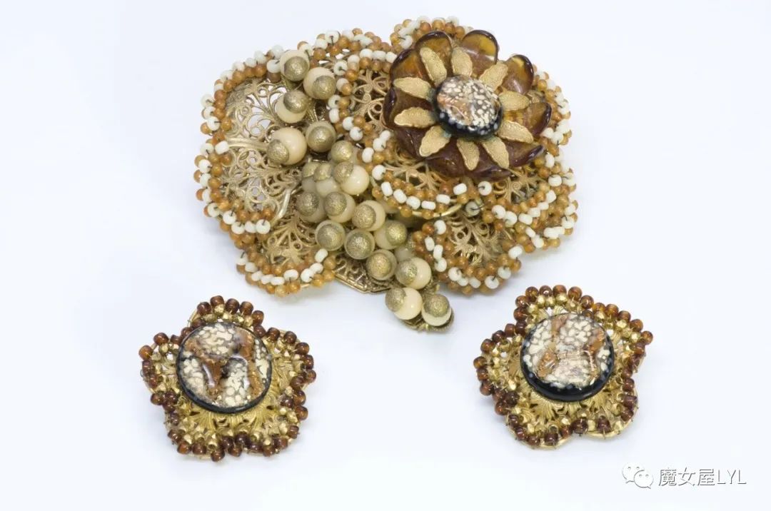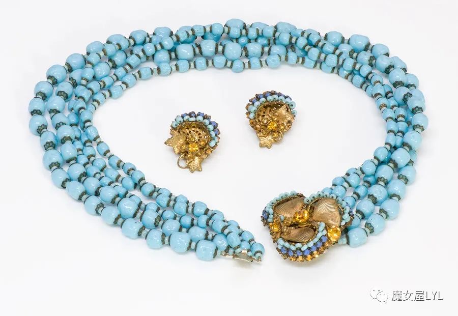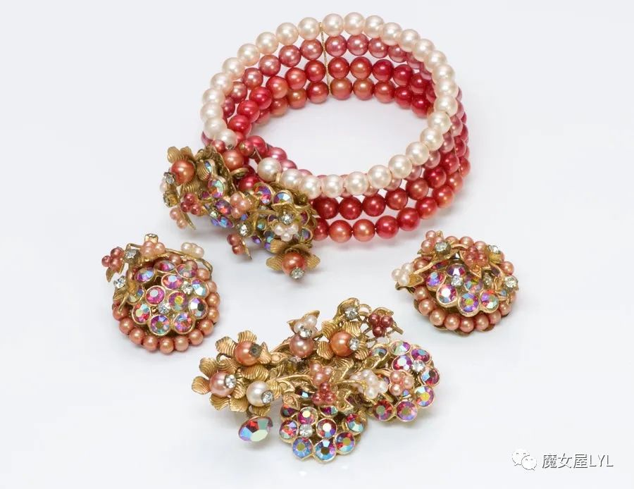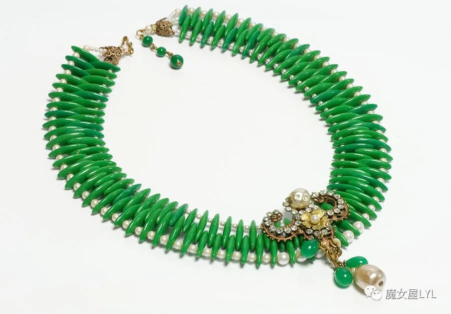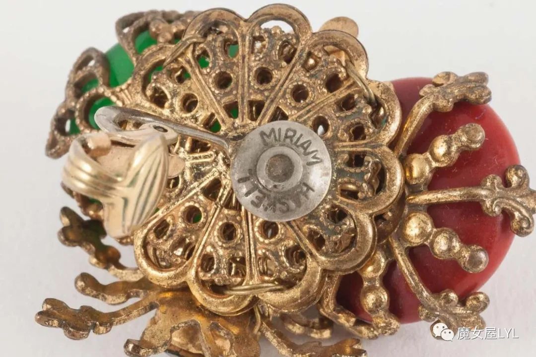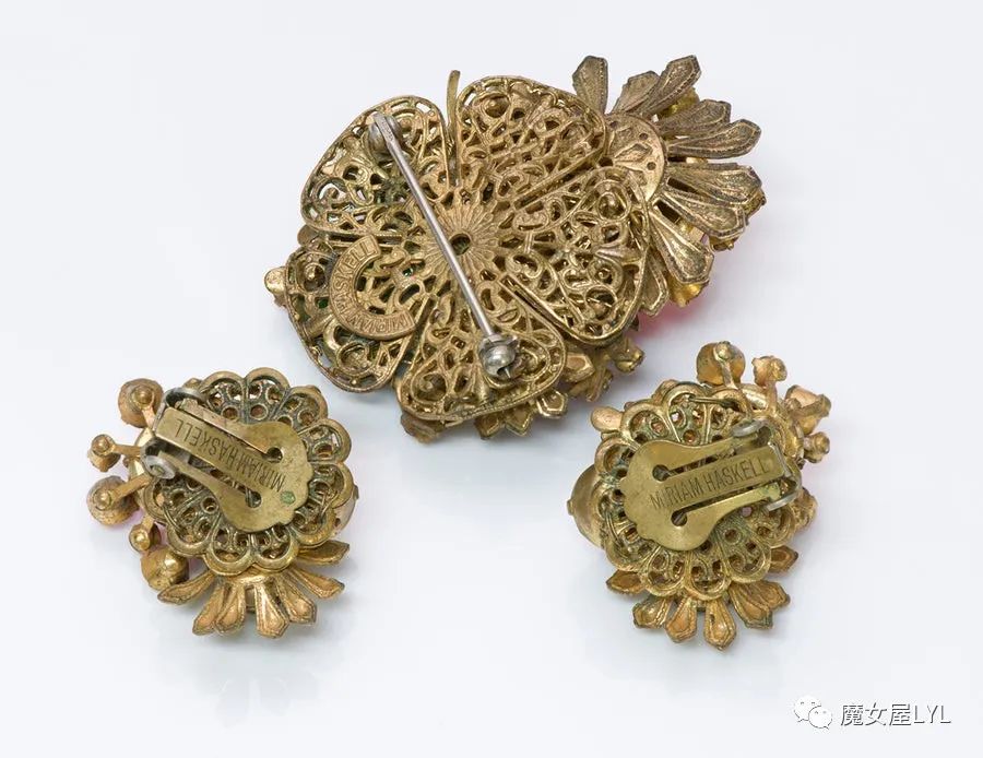 本文中出现的首饰,大多是有标注Frank Hess的作品,但签名在首饰上仍然使用 Miriam Haskell,带有签名的古董首饰现在可以售价到1000美元以上,尽管这些饰品的原材料只不过是玻璃珠子。