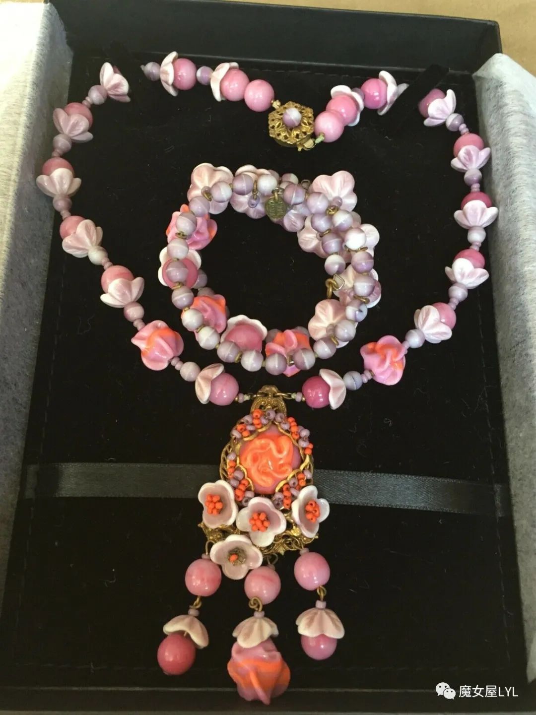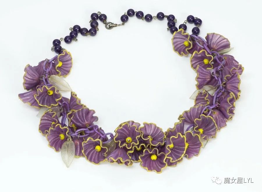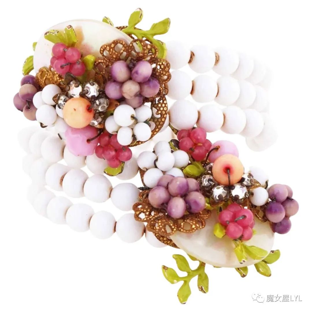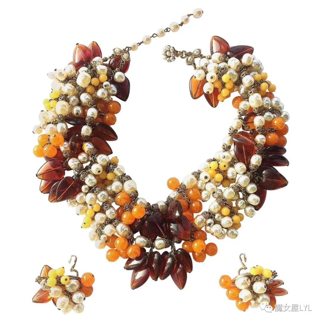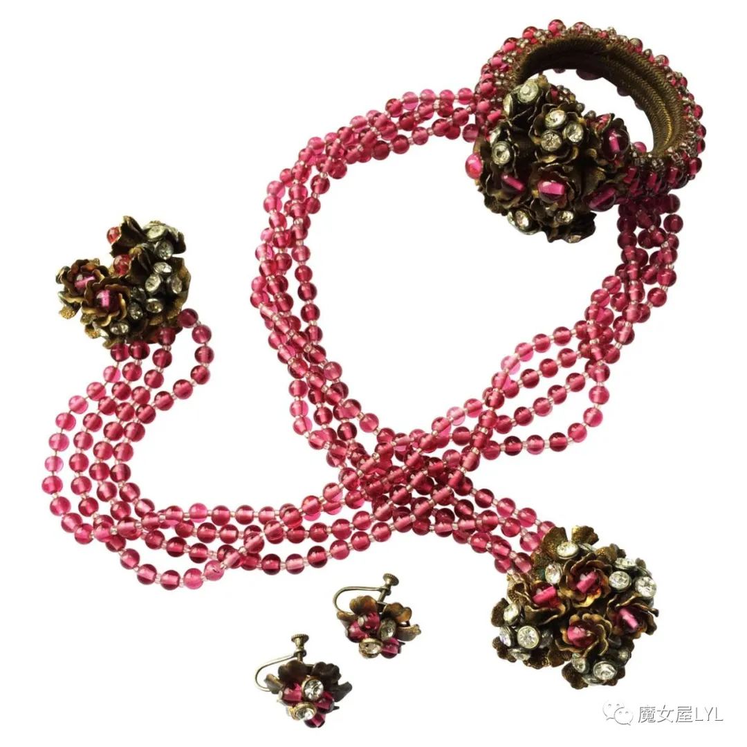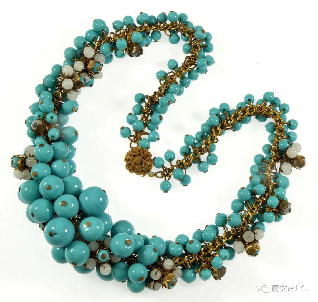 本文中出现的首饰,大多是有标注Frank Hess的作品,但签名在首饰上仍然使用 Miriam Haskell,带有签名的古董首饰现在可以售价到1000美元以上,尽管这些饰品的原材料只不过是玻璃珠子。