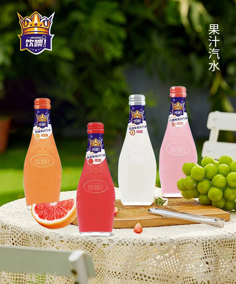 饮噢果汁汽水采用330ml玻璃瓶透明包装,携带方便,畅饮无阻!这款果汁汽水不仅性价比高,而且外观简约时尚,采用经典的小蛮腰设计,十分符合当代大众的审美,金属螺旋瓶盖,消费者开启方便。