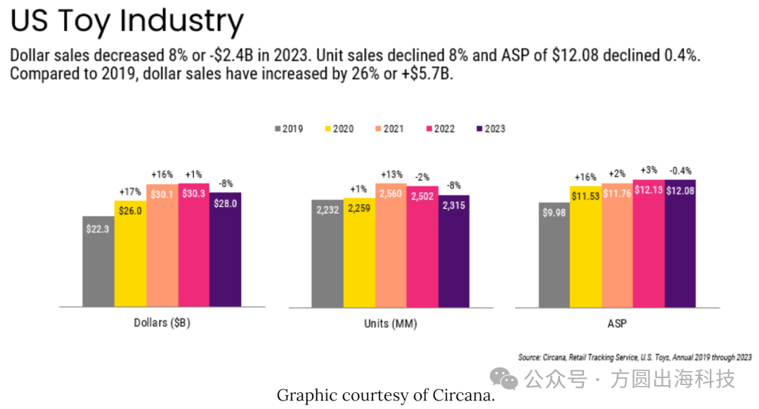 尽管2023年出现下滑,但美国玩具销售额在过去四年却保持正增长。在平均售价(ASP)增长的推动下,美国玩具销售总额增长了57亿美元,平均年增长率达到6%。
