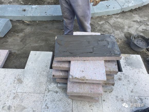 ↑铺装收边区域石材需切割