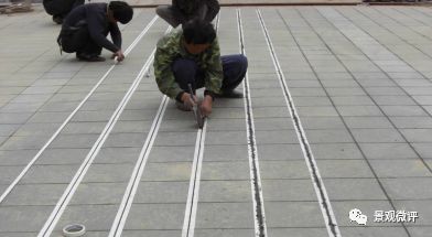 5. 使用美纹纸防止污染。在重要节点铺装中,可以采用美纹纸保护勾缝,完成后铺装面污染小,线条挺括,感官效果好。