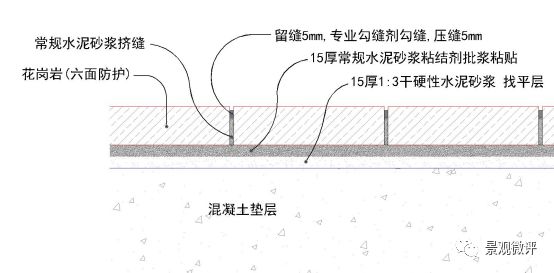 (2) 石材铺贴全部留缝、勾缝。