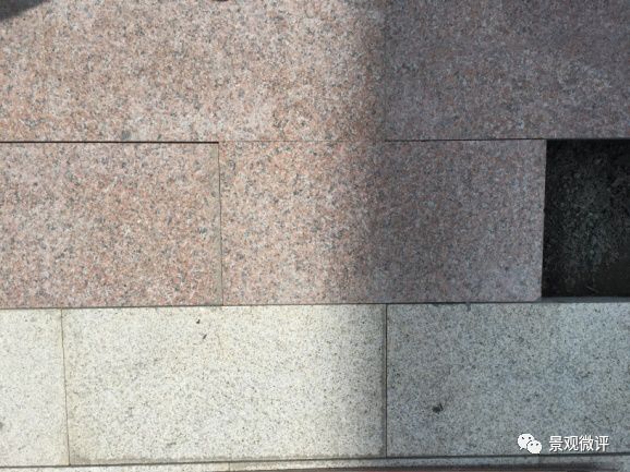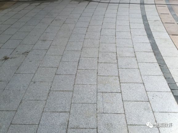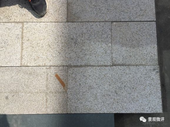1、 石材规格偏差:石材加工采用红外线切割工艺,石材尺寸不稳定,普遍存在偏差1-2mm以上,造成拼贴线性不整齐,缝隙忽大忽小。特别是圆形铺装广场的石材弧形加工,到场后根本无法对缝拼贴,导致没有线性关系,达不到预期的设计效果。