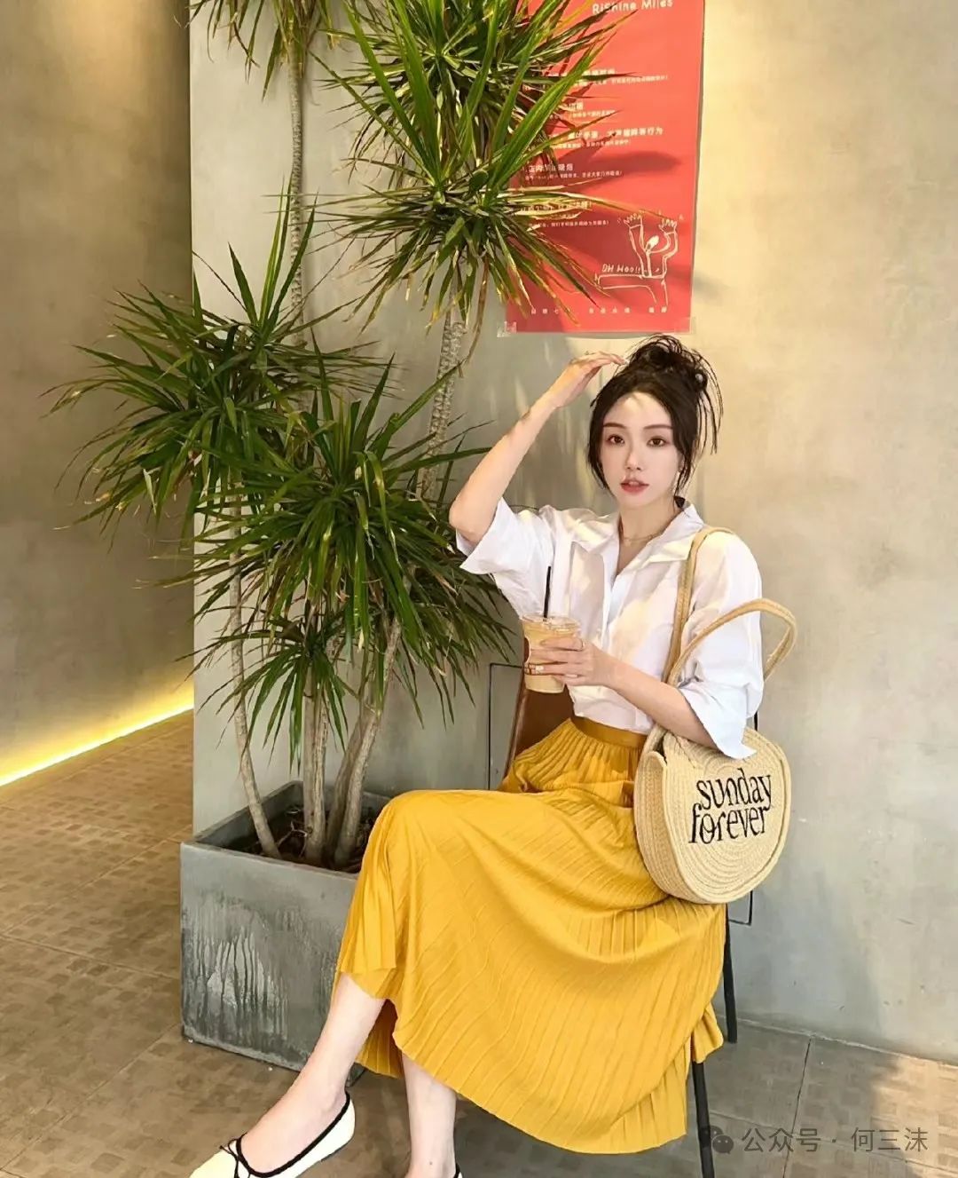 白色代表纯净、清新,而黄色则代表活力、温暖,两种颜色相互交融,呈现出一种明快而不失优雅的氛围。这种搭配不仅能给人带来视觉上的愉悦感受,还能让整体造型更加生动有趣,散发出一种充满阳光气息的活力与魅力。