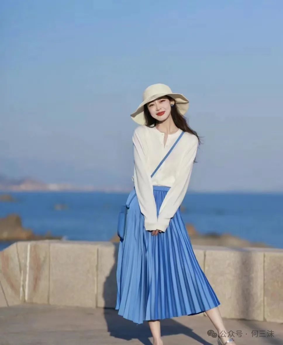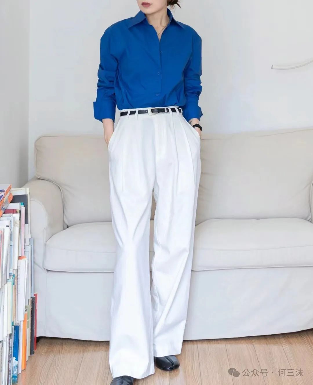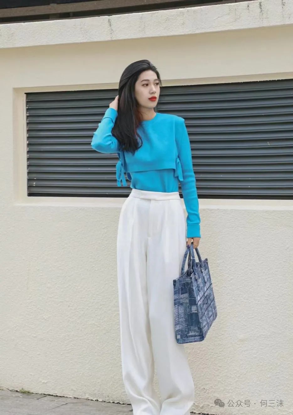 白色与蓝色的搭配不仅适合各种场合,还适合不同季节的穿着。在春夏季节,这种清新而宁静的组合让人感受到清爽与凉爽;而在秋冬季节,这种稳重而内敛的搭配则带来一种安静与温暖。无论是选择蓝色作为主色调,搭配白色作为点缀,还是相反,都能展现出不同的氛围和风格,让你在时尚搭配中散发出独特的魅力。