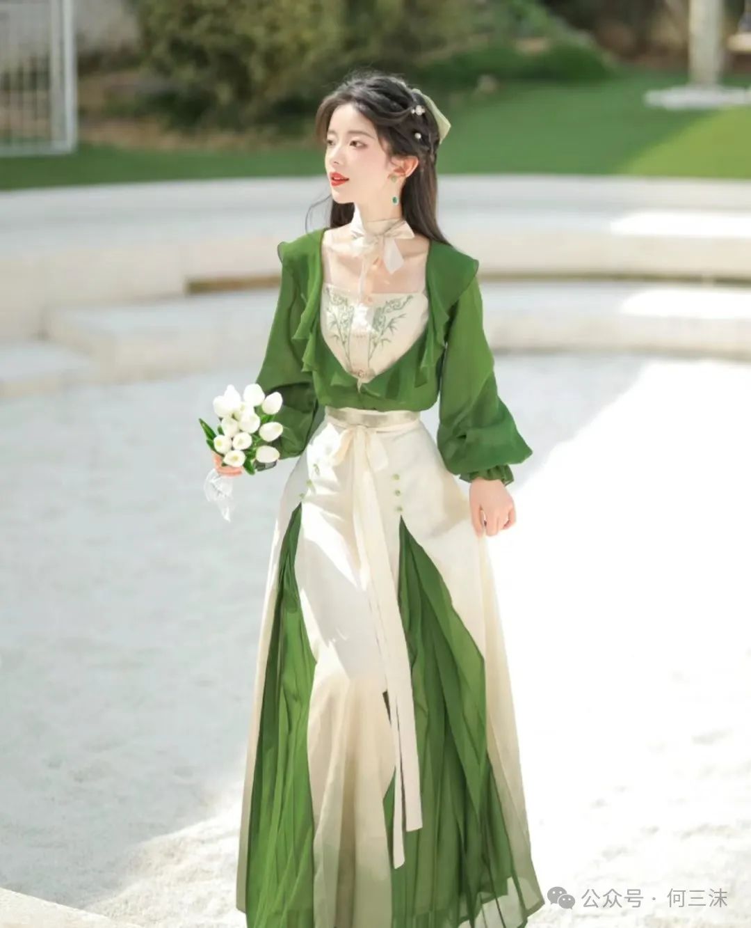 绿色与白色的组合让人仿佛置身于一片翠绿的森林中,清新的白色为整体造型增添了一丝清爽感,而绿色则为其注入了生机和活力。这种色彩搭配如同春日里的新绿与白云的交相辉映,展现出一种柔美而又充满活力的美感,让人感受到大自然的恩赐和生机盎然的气息。