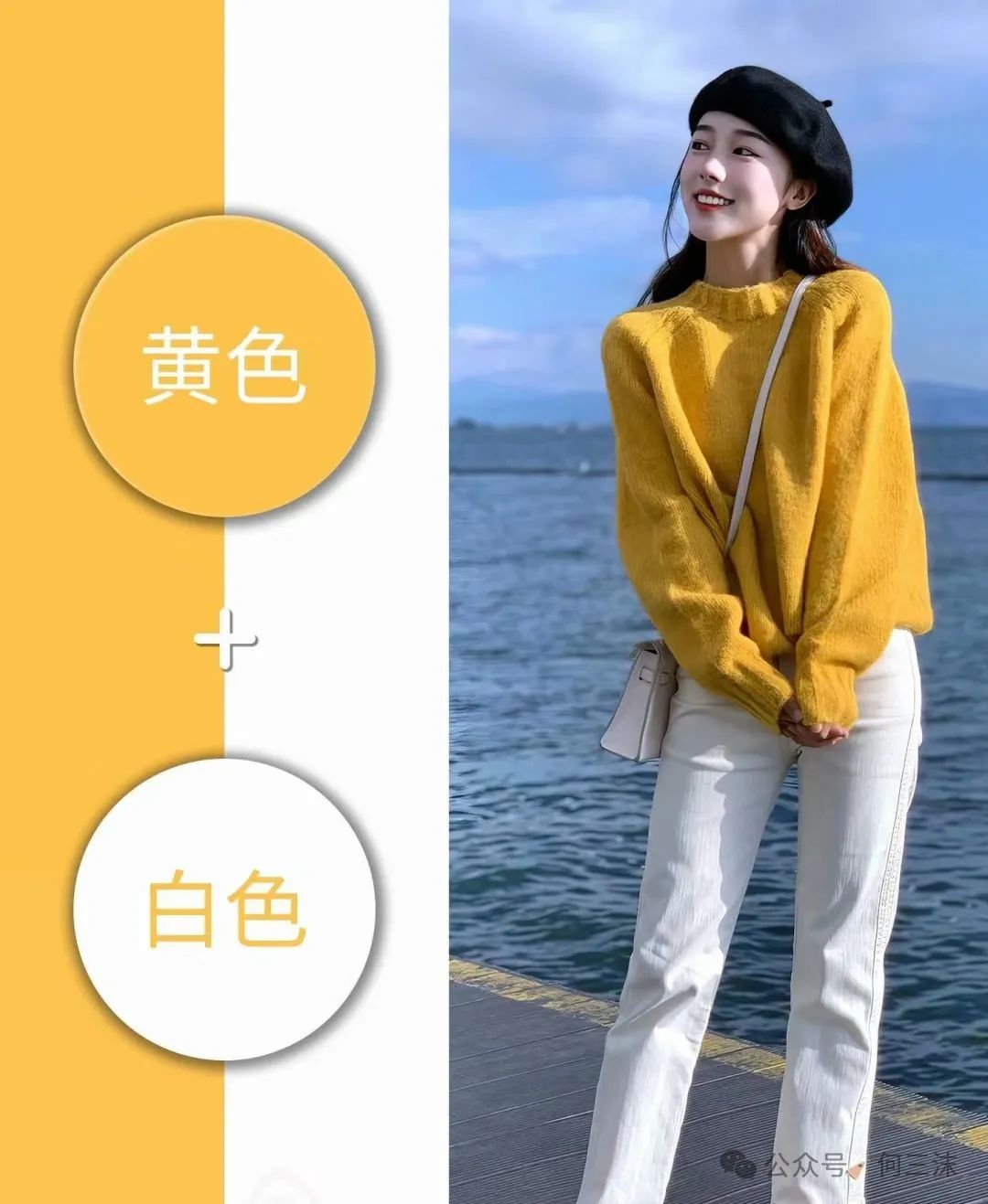 黄色,如初升的太阳般温暖,为大地带来光明与希望。它是一种明亮、活泼的颜色,代表着快乐、温暖和活力。黄色在色彩搭配中有着独特的魅力,与白色的搭配更是展现出和谐共处的美妙效果,就如同太阳与白云的完美结合,不仅是大自然的绝配,也是衣橱中不可或缺的经典配色。
