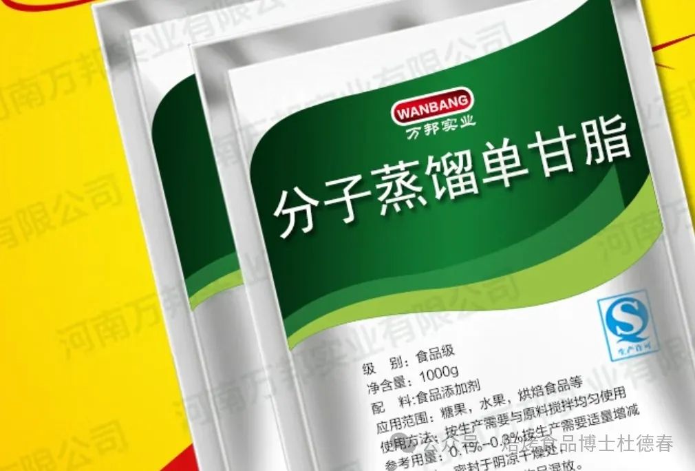 分子蒸馏单甘酯:乳化、防腐、增稠、保湿、保鲜、改良面团组织结构与架构等、抗老化等。