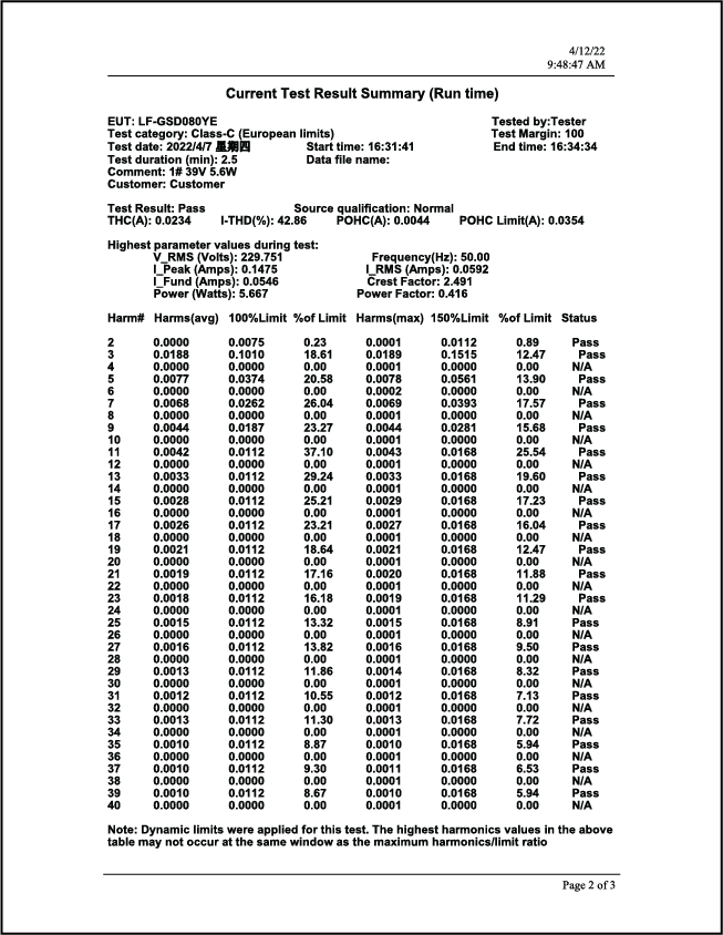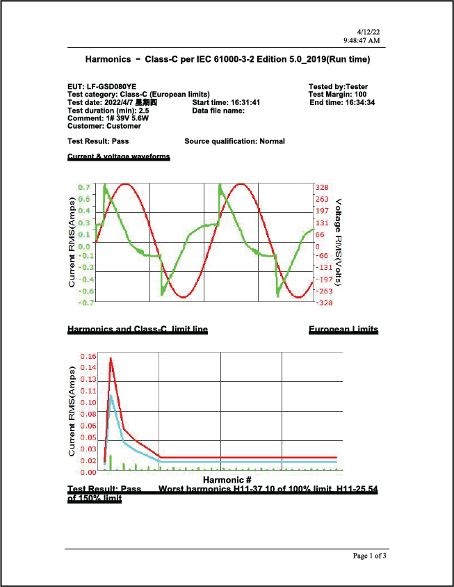 第一个:保证自身的产品质量,产品质量好不好,取决于产品的各项参数准不准确,而产品的各项参数准不准确,又取决于这个产品生产过程中所用到的这个仪器设备,它是否是准确的。如果仪器设备准了,产品的各项参数也准了,它的产品质量才有保障。所以,企业需要做仪器的计量校准的原因之一就在这里。DC6100 谐波分析功能符合 GB 17625.1、IEC61000-3-2、IEC61000-3-12 和 IEC61000-4-7 的最新标准,通过 FFT 功能实现谐波、(间谐波等参数的测量),并进行限值判定,形成详细的分析报告,可用于检测LED照明和家用电气及电子设备等的谐波是否符合 IEC 标准。