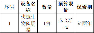鹤山市共和镇卫生院就快速生物阅读器采购项目进行院内公开招标,欢迎国内合格供应商前来参加项目密封投标。