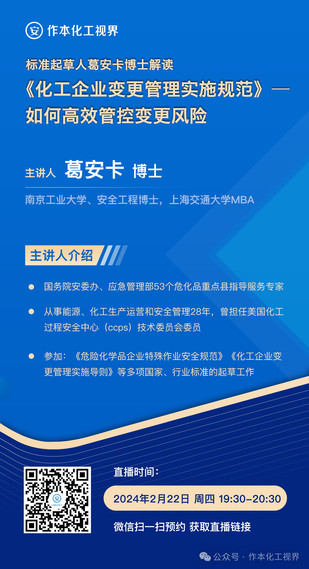 变更管理是化工安全生产关键管理环节。欧美化工行业统计数据表明,约80%的化工安全生产事故都与变更管理风险未得到有效管控相关。当工艺技术、设备设施发生变更时,有可能会引入新的风险,破坏原有的保护措施,导致灾难性事故的发生。2023年1月15日,盘锦浩业化工的爆炸着火事故(13人死亡、35人受伤,直接经济损失约8799万元)与变更管理失控密切相关。