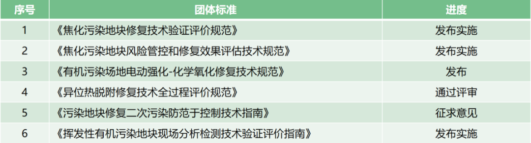 专委会积极组织推进行业标准化工作,2023年,在中国环保协会的支持指导下,专委会两项团标《有机污染场地电动强化-化学氧化修复技术规范》、《土壤和地下水挥发性有机污染物现场分析检测设备技术验证评价指南》顺利发布;《异位热脱附修复技术全过程评价规范》顺利通过联合会评审待发布;《污染场地修复二次污染防范与控制技术指南》已完成征求意见及预审,待联合会评审。