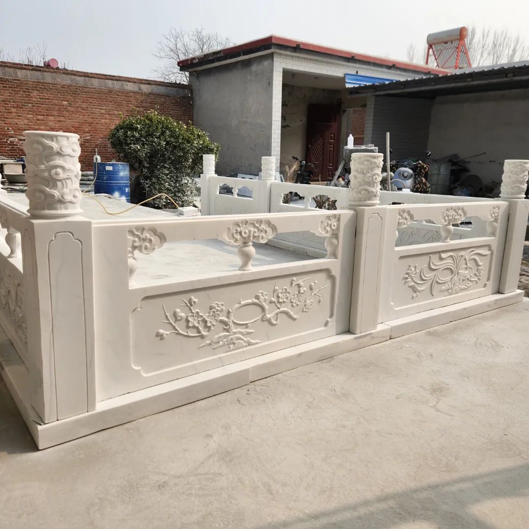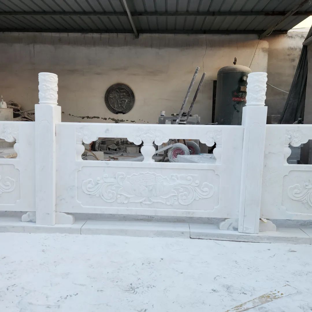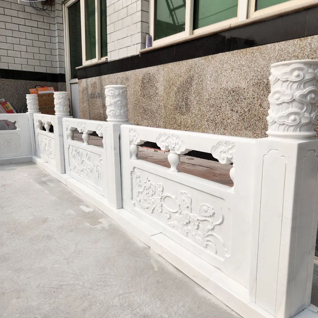 栏杆石雕栏板护栏雕塑应用普遍,尤其是作为家用,户外,河道护栏具有抗腐蚀和抗腐性能,可以增加安全性和美观性。它以精细的工艺和独特的图案能够为护栏增添美丽的色彩,除此之外,汉白玉石栏杆石雕护栏雕塑还可以用于园林建筑、大型商业建筑装饰,学校建筑等等。